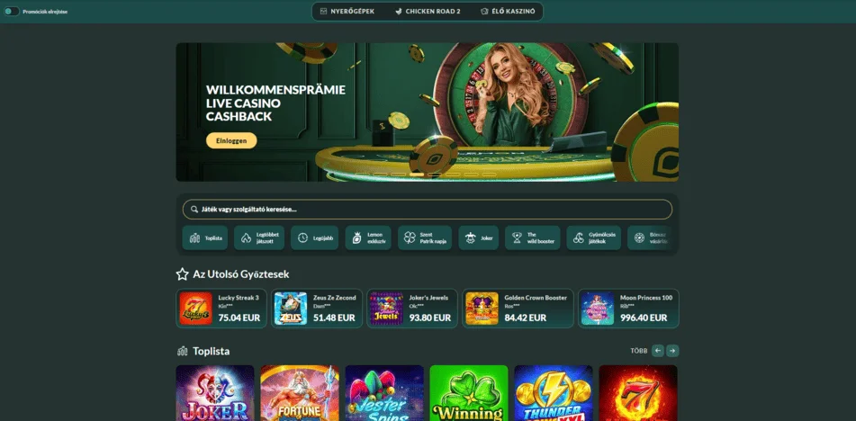 - Játékkategóriák: Rulett, Blackjack, Baccarat, Póker és játékshow-k